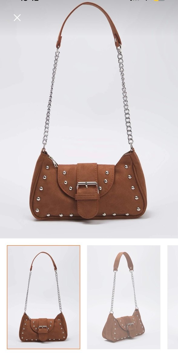 Kahverengi süet kadın çantası, tokalı kapak ve parlak gümüş zincir askıya sahip. Minimalist ve desensiz tasarım, sokak modasına uygun. kendi sitesinde 360tl