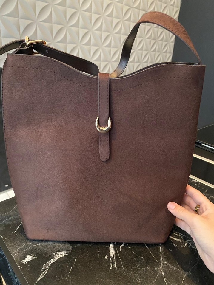Kahverengi Süet Tokalı Kadın Çanta