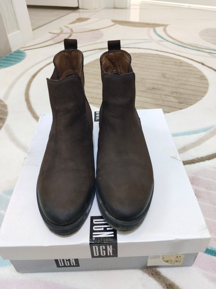 Kahverengi süet kadın botları, kalın topuk Günlük kullanıma uygun minimal ve desensiz tasarım 2 defa anca giyildi