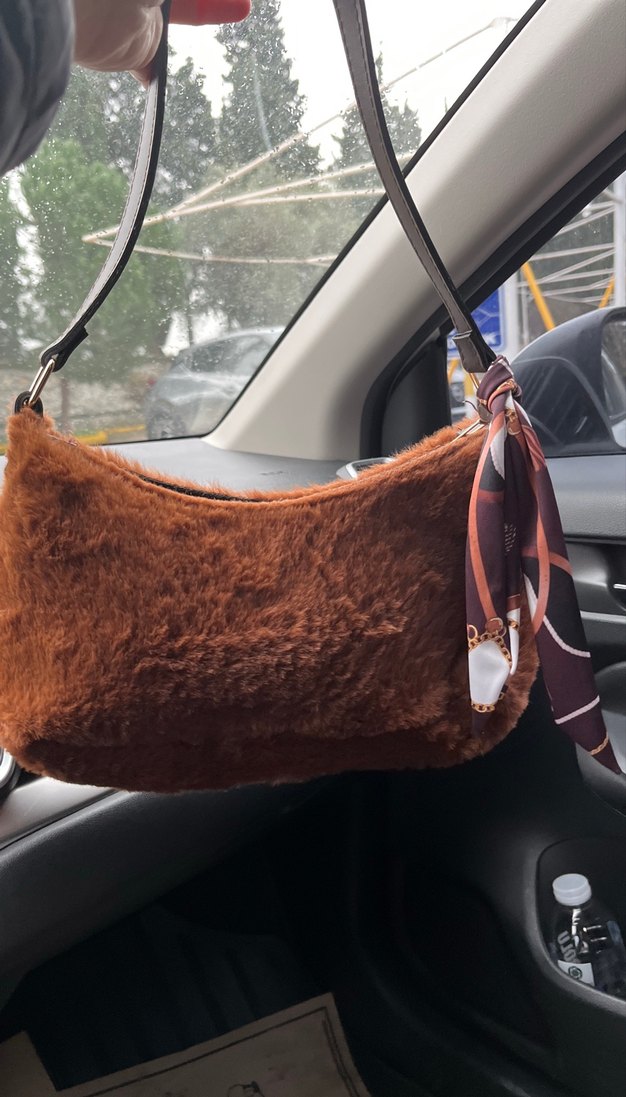 Kahverengi Süet Tüylü Kadın Omuz Çantası