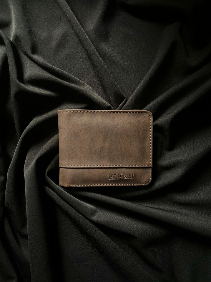 MKM MAN Koyu kahverengi erkek cüzdan, minimal desen ve sağlam suni deri dokusuyla biker tarzına uygun klasik görünüme sahip.