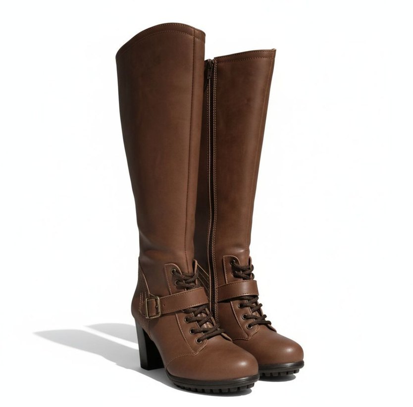 Kahverengi Suni Deri Kemerli Çizme + Çanta hediyeli / 36 numara