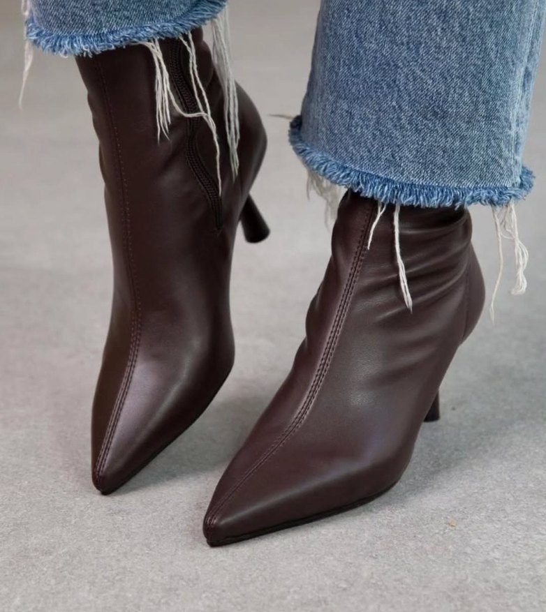 Kahverengi suni Deri Stiletto Topuklu Kadın Bot