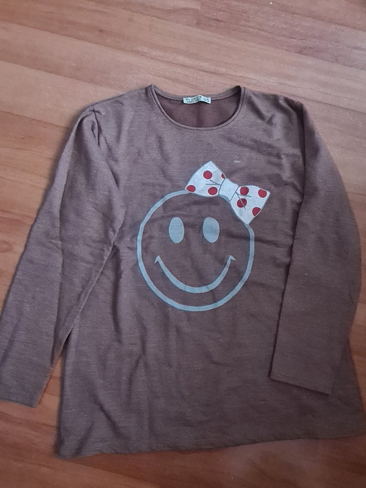 Kahverengi,gülen yüz baskılı,uzun kol sweatshirt. Baskının hemen üstünde minik bir leke mevcut. Yıkayınca çıkar muhtemelen. Ürün sayılı kullanıldı,uzun süredir satış için ayrı duruyordu. Xl beden uyumludur. L ye de olur. Marka muadil yazdım.