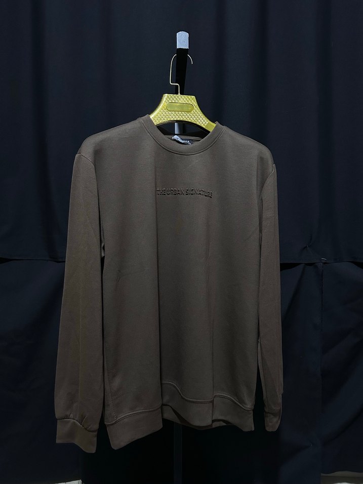 Kahverengi Sweatshirt Uzun Kollu Bisiklet Yaka