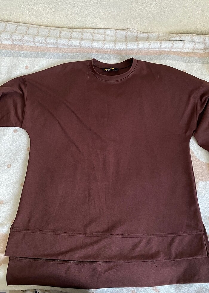 bir kez kullanıldı. standart beden üst beden geniştir. alt beden l uyumlu. sondaki fotoğraftaki takımla aynı kahverengi rengi üzerimde duruşu