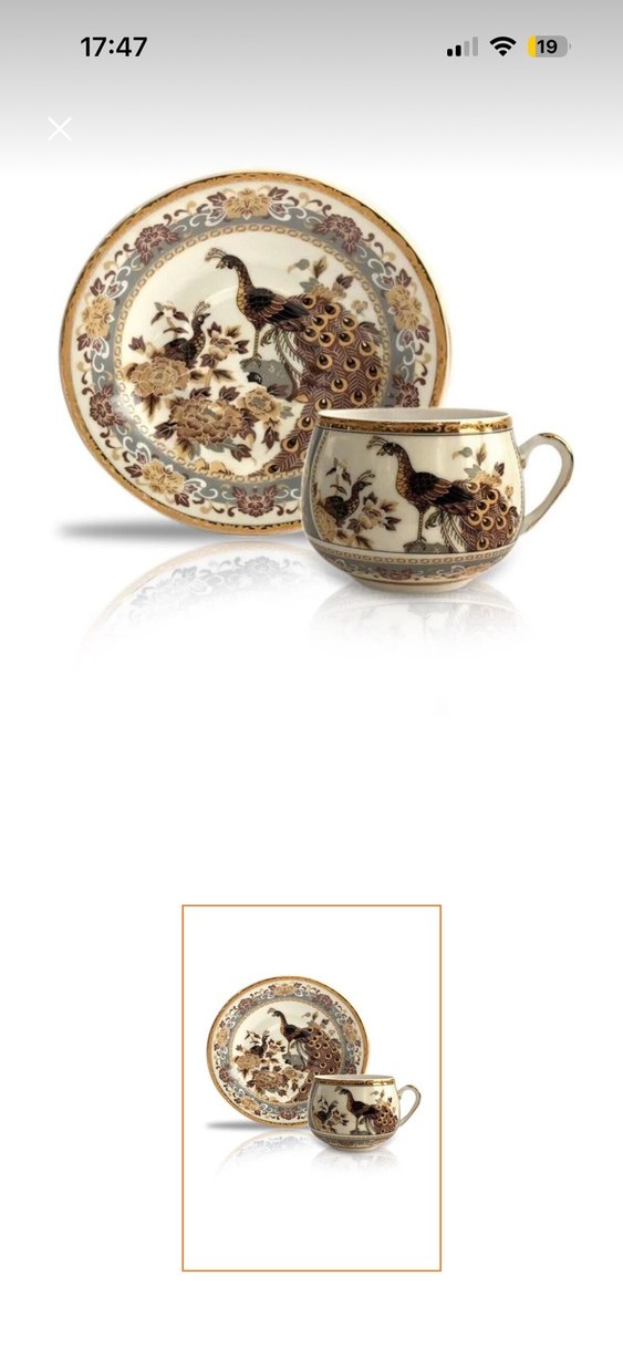 Kahverengi tavuskuşu ve çiçek desenli fincan ile tabak seti, klasik bir dokunuş sunar. ☕ sınırlı sayıda ürünlerimiz mevcuttur bu yüzden hızlı davranmanız gerekiyor
