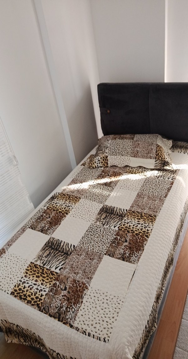 Kahverengi tek kişilik Leopar Desenli Yatak Örtüsü