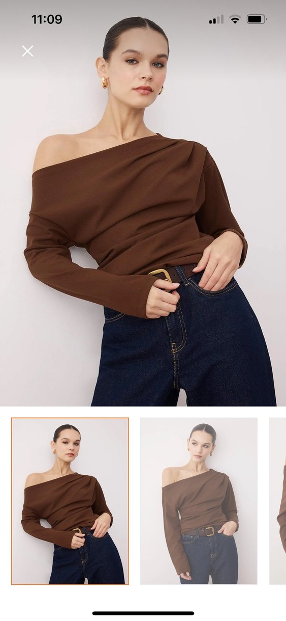Kahverengi Tek Omuzlu Uzun Kollu Bluz