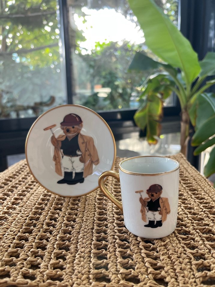Kahverengi Temalı Ayıcık Desenli Fincan ve Tabak