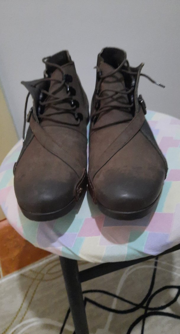 bağcıklı koyu kahverengi erkek botları, grunge punk tarzında, desen içermeyen sağlam bir tasarım.