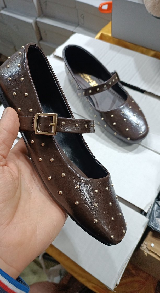Kahverengi Tokalı Blok Topuklu Kadın Babet