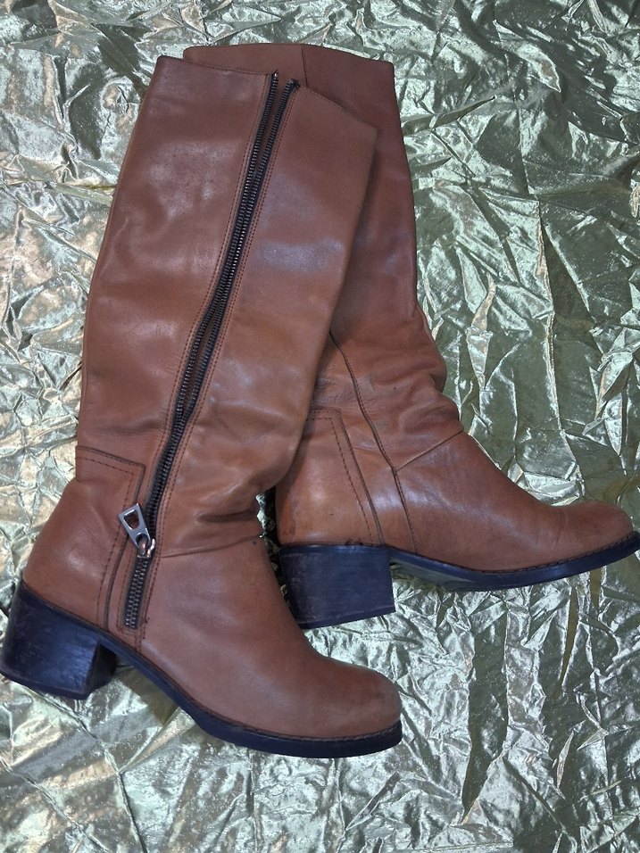 Kahverengi dizüstü deri botlar, tokalı ve blok topukludur. Parlak yüzeye ve kolay giyim için yan fermuara sahiptir. Rahat, şık tarzlar için ideal. yan fermuarı tamamen açılmaz sadece genişlik Payı sağlar öyle bir model çalışılmış hakiki deri Beymen stüdyo marka rahat ve klas duruş sağlar