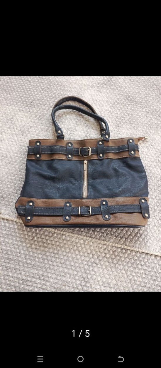 Kahverengi tokalı deri kadın çantası, çağdaş stile sahip ve günlük kullanım için uygun.