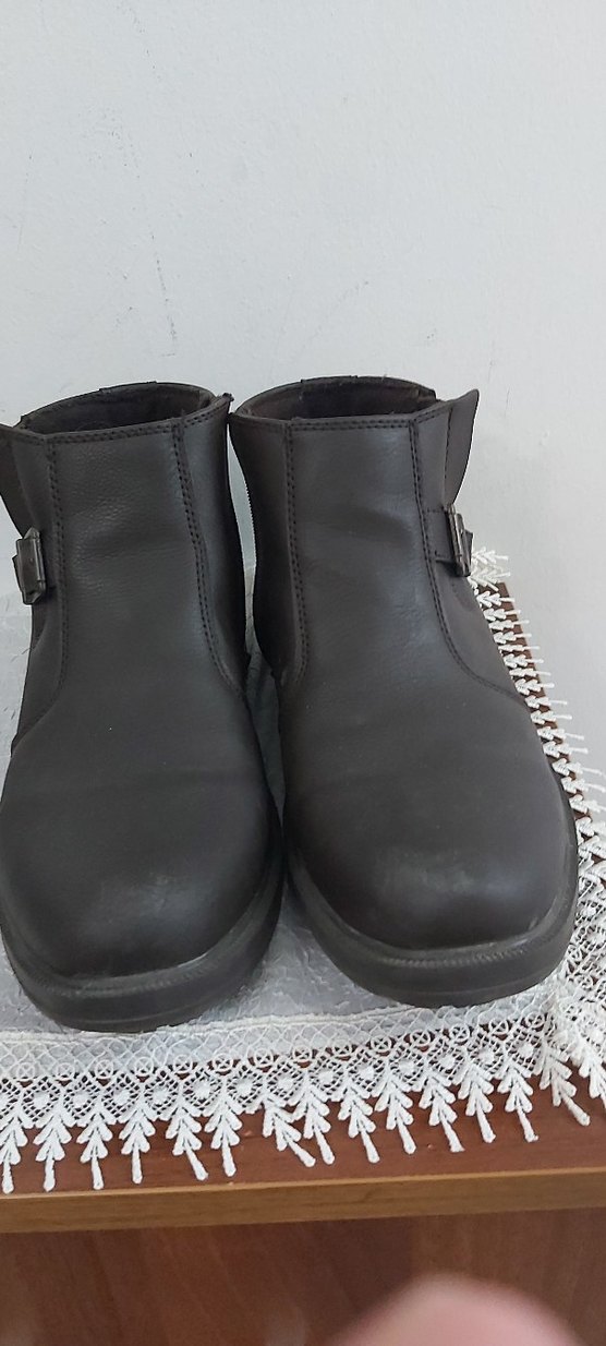 Koyu kahverengi, tokalı, minimalist tarzda erkek biker botu, desen içermeyen düz yüzeyli.
