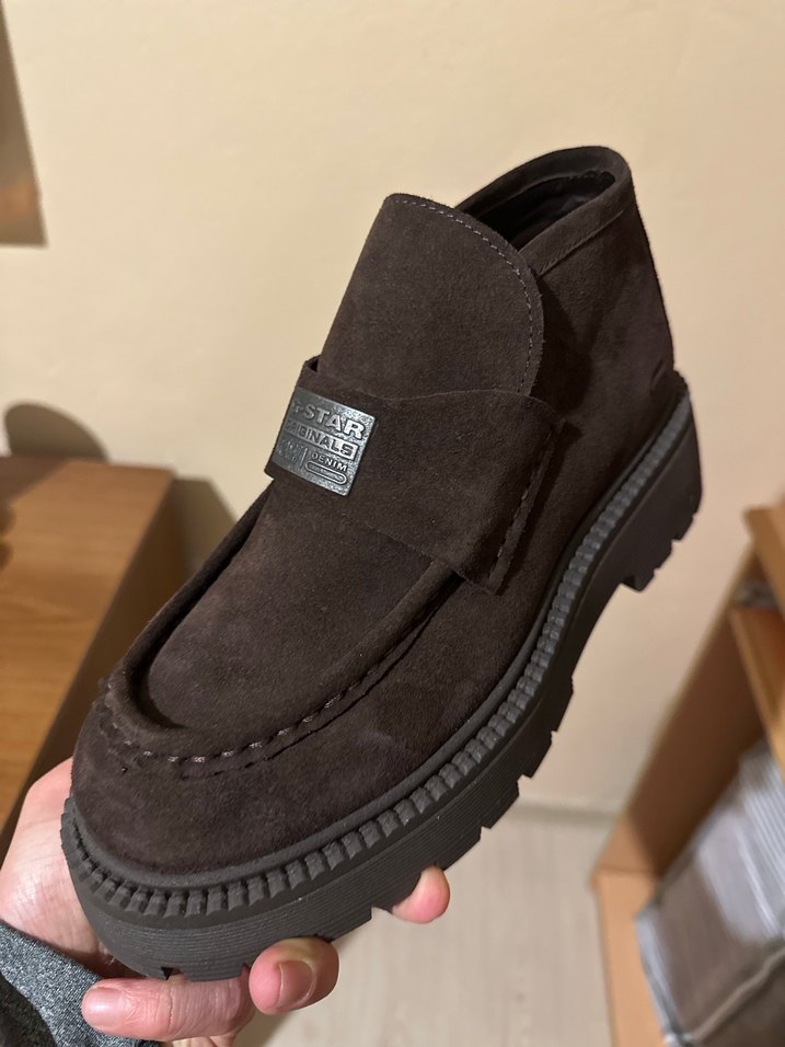Gerçek süet deri çok tarz bir ürün beğenen kaçırmasın son ürün 40 numara ama 40.5 41 giyenede olur kutulu etiketli Kalın tabanlı, tokalı koyu kahverengi erkek botu. Sokak stiline uygun, desensiz ve dayanıklı.