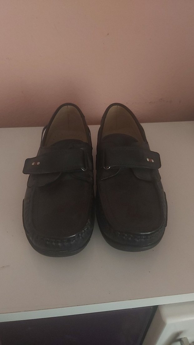Koyu kahverengi, tokalı ve kauçuk malzemeden yapılmış erkek klasik ayakkabısı, günlük kullanıma uygun geleneksel stilde.