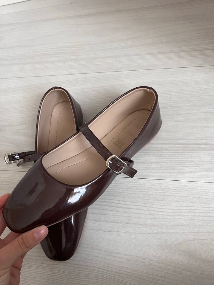Kahverengi, tokalı bantlı, kadın ayakkabısı. Modern klasik tarzda, günlük kullanıma uygun şık tasarım.
