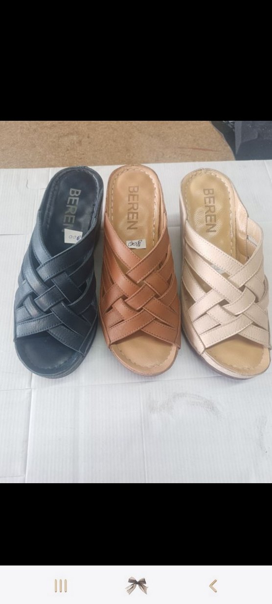 Kahverengi, tokalı ve dolgu topuklu kadın terlikleri. Kauçuk malzemeden yapılmış, rahat ve günlük kullanım için uygun. İçinde "BEREN" markası bulunur.