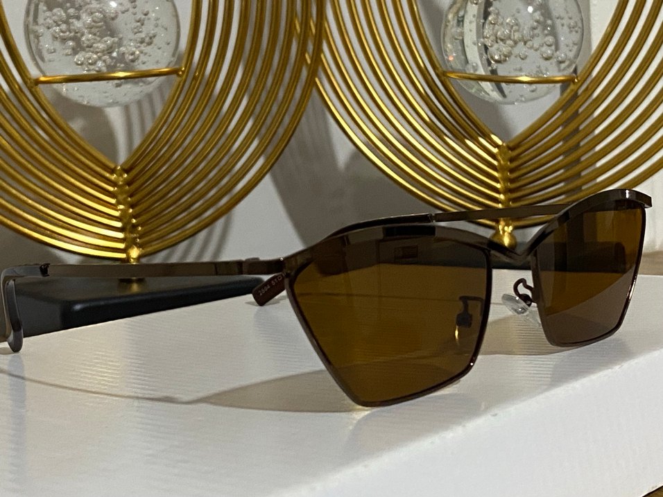 Kahverengi tokalı kadın güneş gözlüğü, koyu renkli camları ve minimalist, çağdaş tasarımıyla trend belirleyiciler için uygun bir aksesuar.