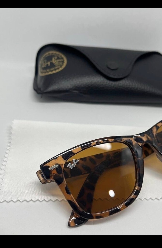 Kahverengi tokalı güneş gözlüğü, koyu renkli kaplumbağa desenli çerçeve ve koruyucu kılıf ile birlikte sunulur. Rayban a kalıte hiç kullanılmadı
