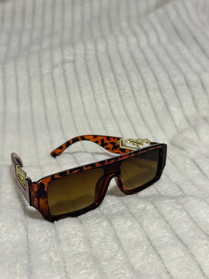 Kahverengi tokalı, dikdörtgen çerçeveli kadın güneş gözlüğü, klasik retro sokak stiliyle uyumlu. ️