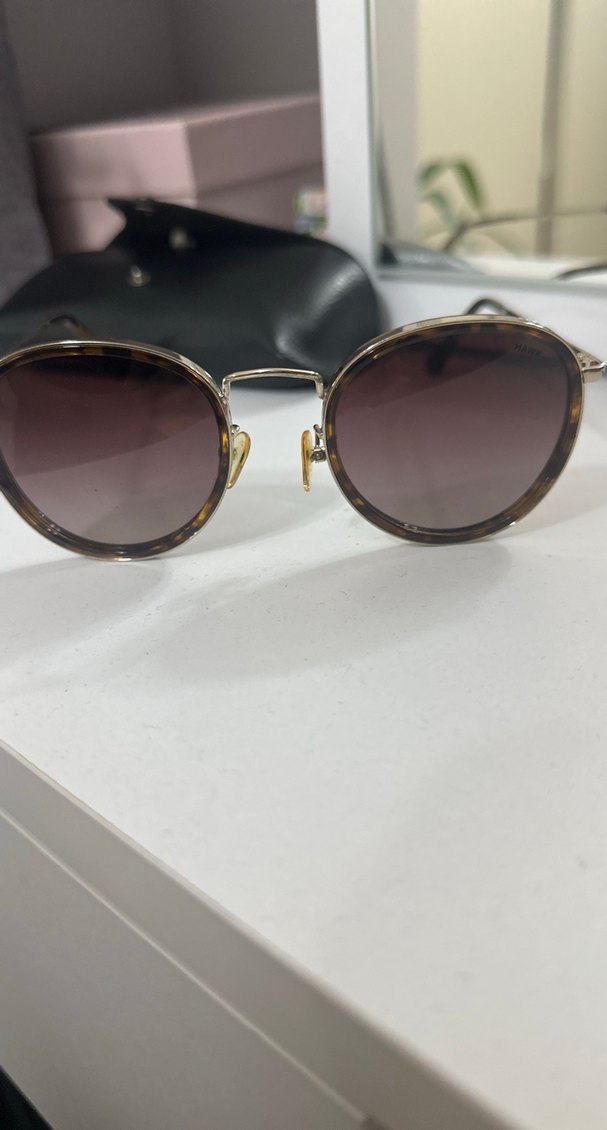 Koyu kahverengi yuvarlak camları ve tokalı detayıyla klasik ve modern tarzı birleştiren kadın güneş gözlüğü. ️