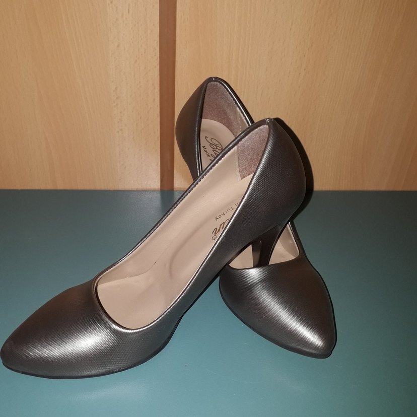 Kahverengi, tokalı kadın stiletto topuklu ayakkabı. Modern klasik tarzda, ofis kullanımı için uygun, desen içermeyen ve kauçuk malzemeden üretilmiştir.