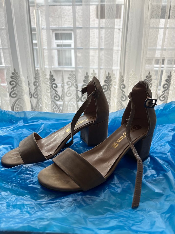Kahverengi Tokalı Kadın Topuklu Sandalet