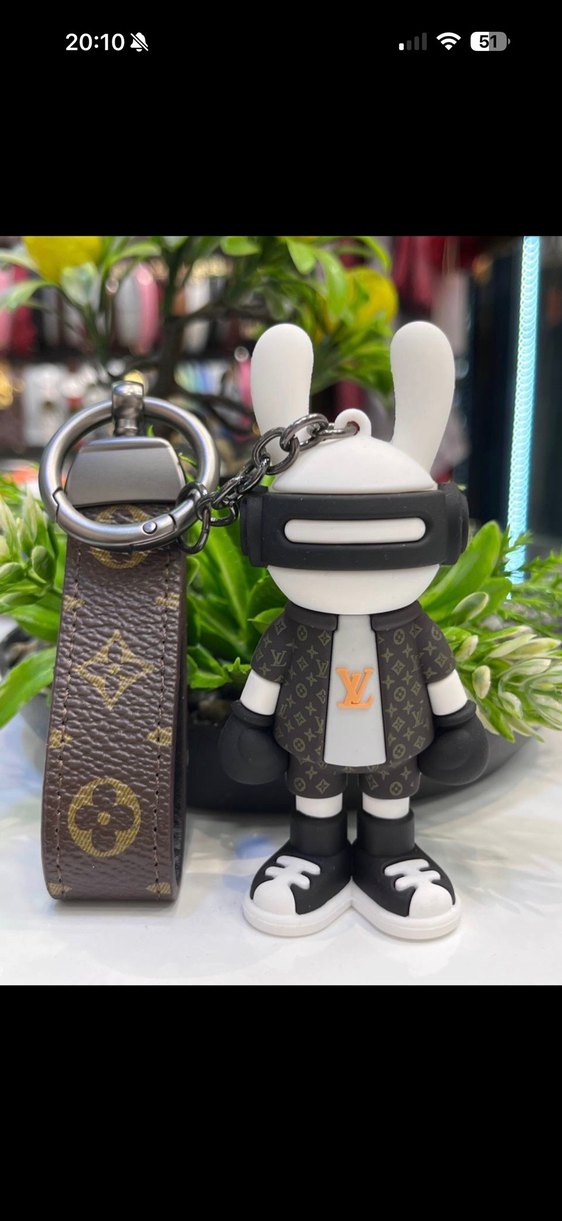Kahverengi tokalı kayış ve spor ayakkabı, eldivenli figürlü sokak stili anahtarlık. Trendy günlük kombinlere uygun.