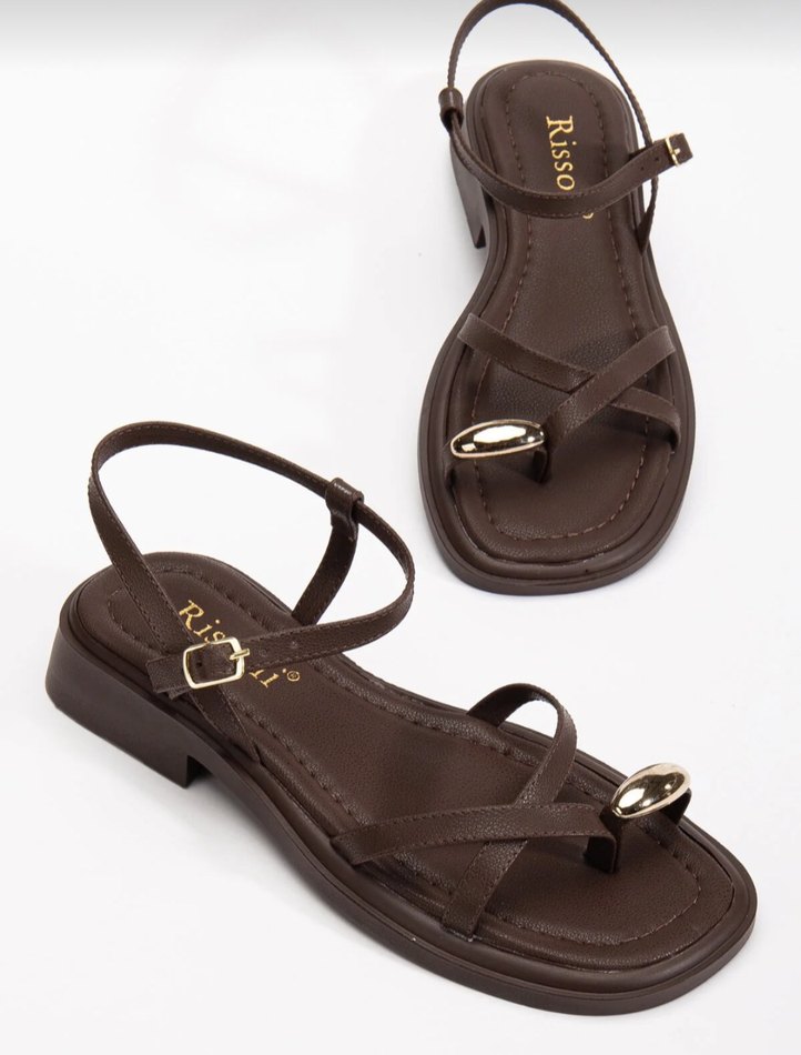 Kahverengi, parlak yılan desenli kadın sandalet. Lastik malzemeden, tokalı ve blok topuklu, minimalist ve bohem tarzda günlük kullanıma uygun. 1 kez giymek nasip oldu tatilde daha da giymek nasip olmadı.
