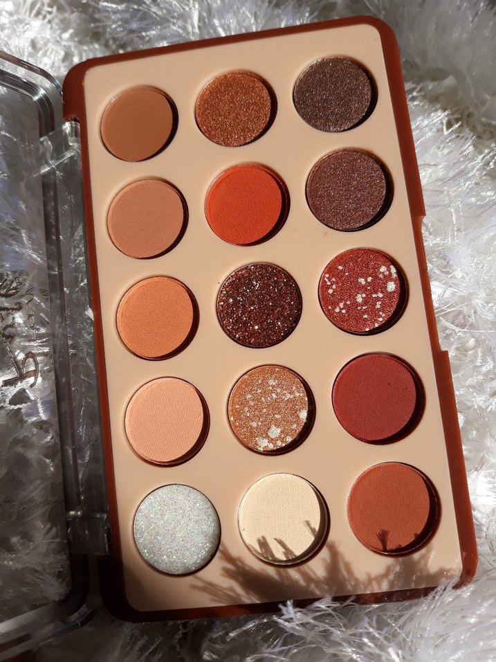 Bu far paleti, mat, ışıltılı ve simli bitişlere sahip açık kahverengi tonlarında 15 renk içerir.