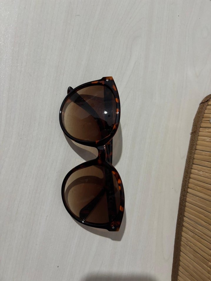 Koyu kahverengi, transparan çerçeveli kadın güneş gözlüğü. Minimalist ve karşı kültür tarzında, sade ve temel tasarım. ️