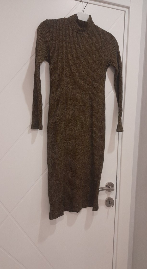 Kahverengi, balıkçı yaka ve uzun kollu, triko yün kumaştan yapılmış, uzun ve vücuda oturan rahat bir elbisedir. Günlük sokak stili için uygundur. sıfır hediye geldi hic giymedim