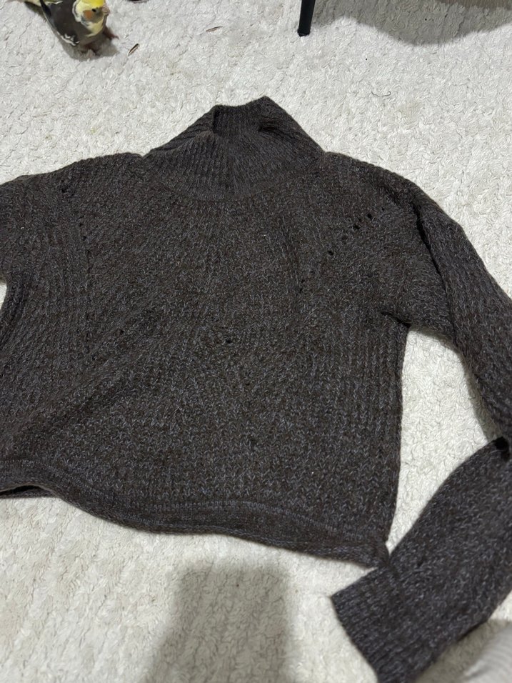 Kahverengi renkte, boğazlı ve uzun kollu, yumuşak dokulu triko kumaştan yapılmış, vücuda oturan normal uzunlukta kadın kazak. Desensiz sade tasarımıyla günlük kullanıma uygun.