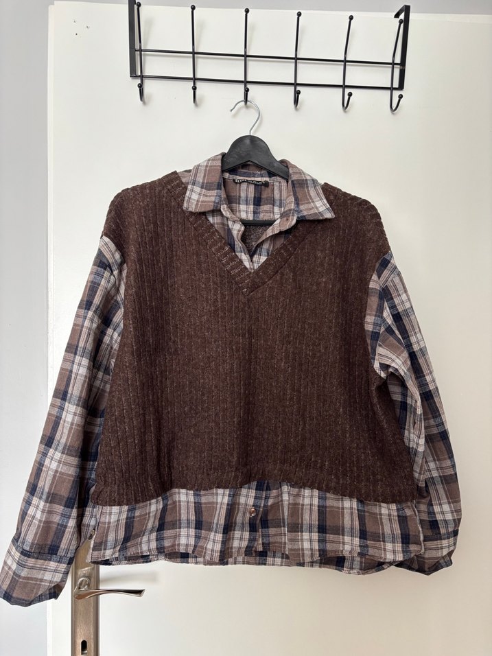 Kahverengi triko gömlekli takım