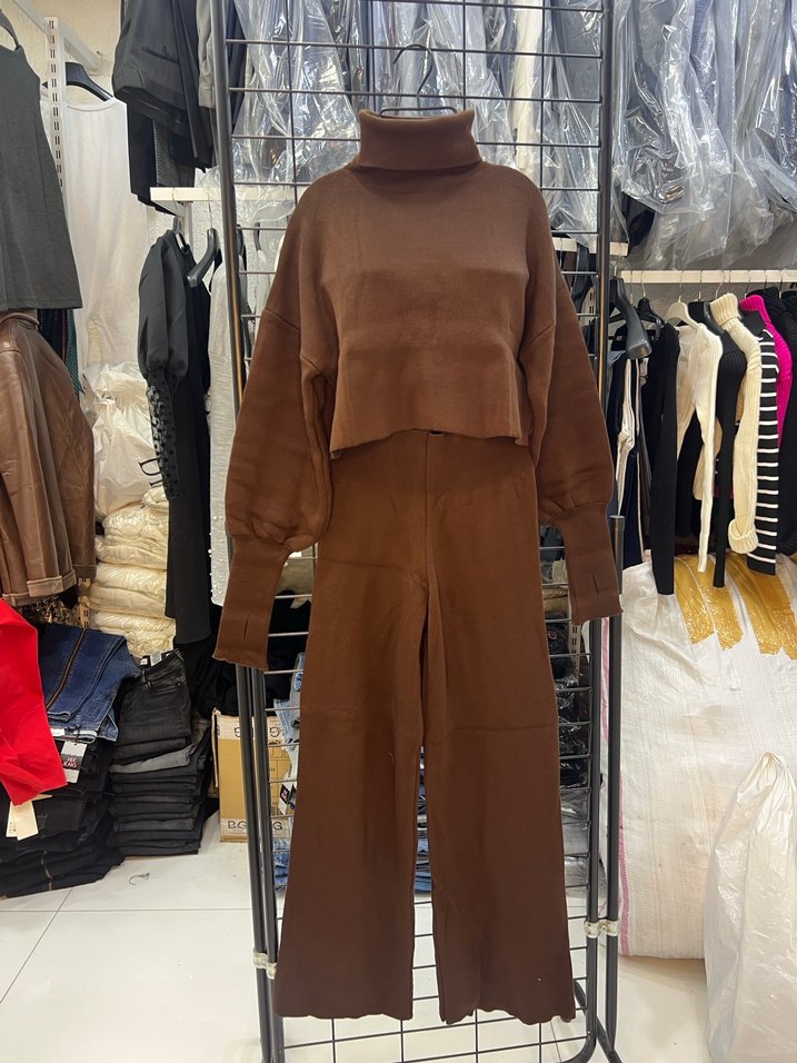 Kahverengi Triko Kadın Tulum