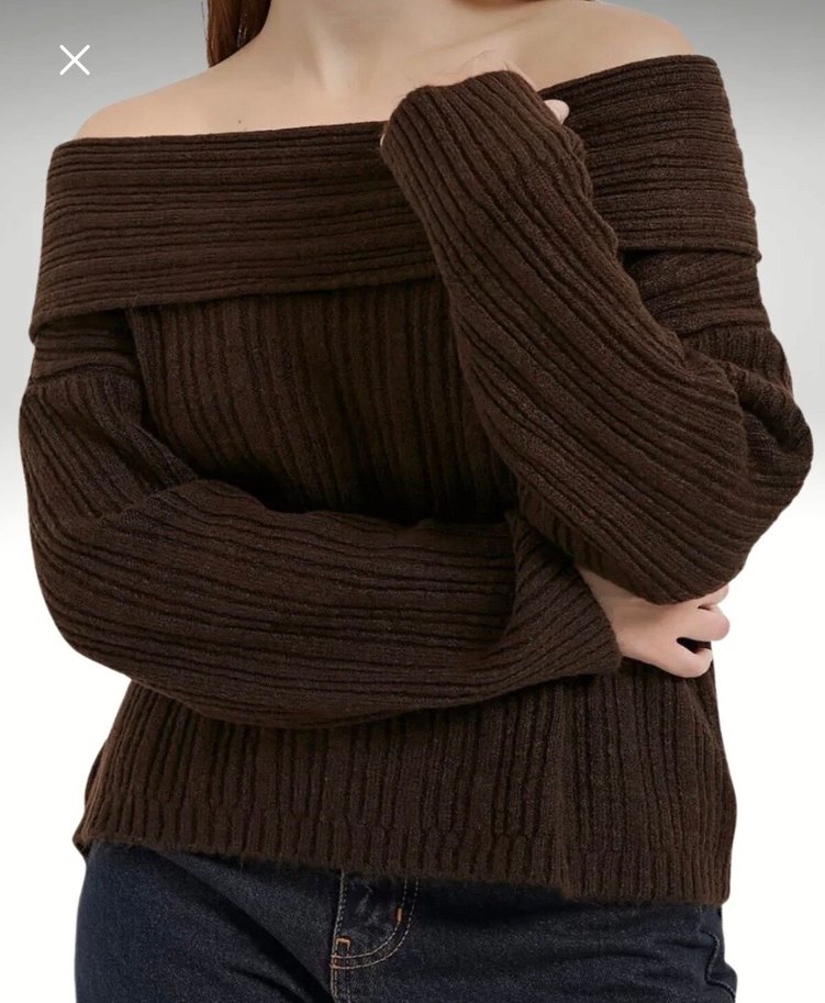 Kahverengi Triko Kayık Yaka Kadın Kazak