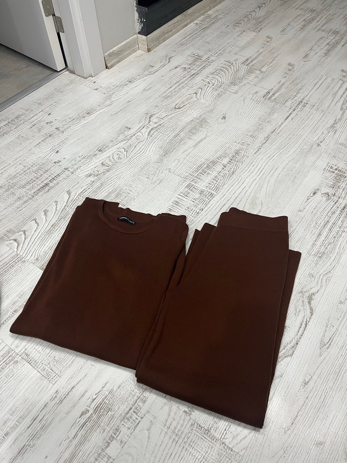 Kahverengi triko takım tesettür bi kaç defa kullanıdı sorunsuz yeni gibi s-m-l uyumlu