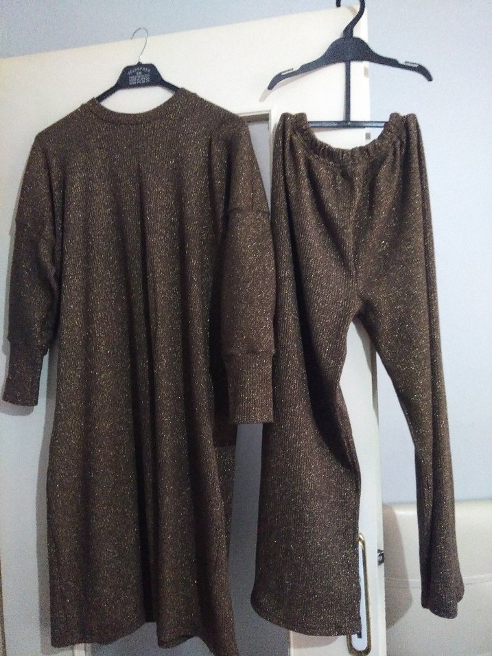 Bu kahverengi triko yün hamile tunik, uzun boy ve bol kesim, uzun kollu ve yuvarlak yaka ile günlük kullanıma uygundur.