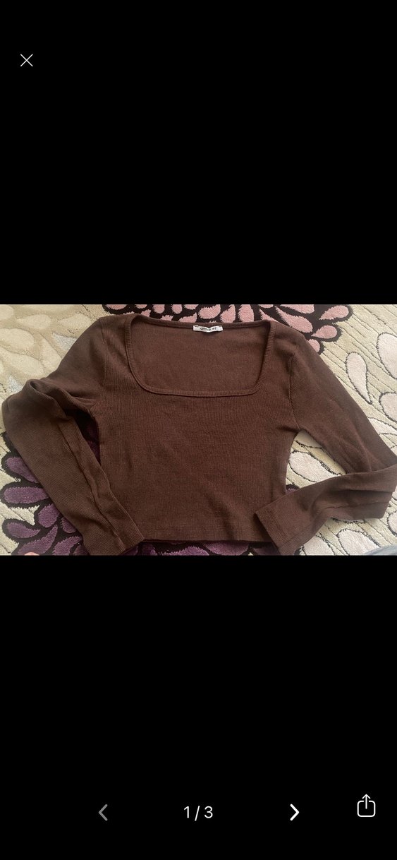 Kahverengi, uzun kollu, triko kumaştan yapılmış, dar kesimli ve tek renk kadın bluz. Günlük kullanıma uygun, rahat ve şık.