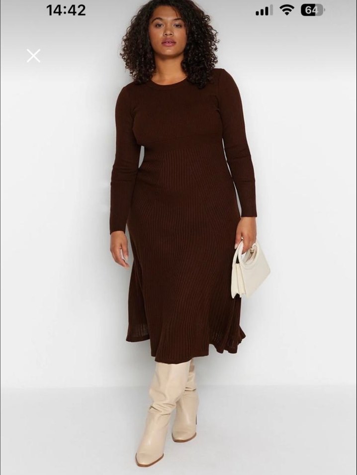 Kahverengi Triko Uzun Kollu Kadın Elbise