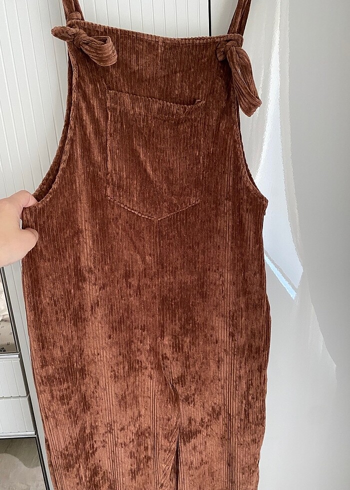 Kahverengi kadife yeni gibi tulum, hamile tulumu