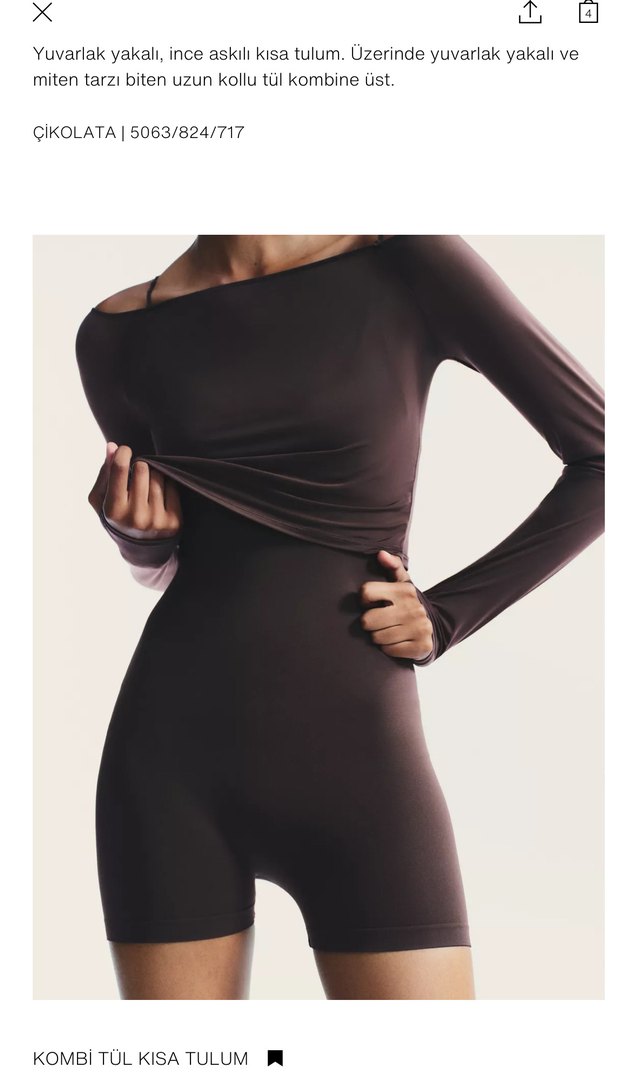 Kahverengi, uzun kollu üst ve altında askılı tulumuyla zara spor takımı, Günlük kullanıma uygun.