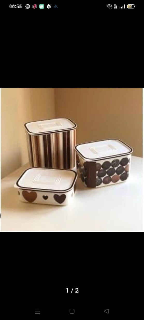 Farklı desenlere sahip kahverengi plastik mutfak saklama kapları seti, beyaz kapaklı. ufak tefek çizikler var ona göre alın lütfen