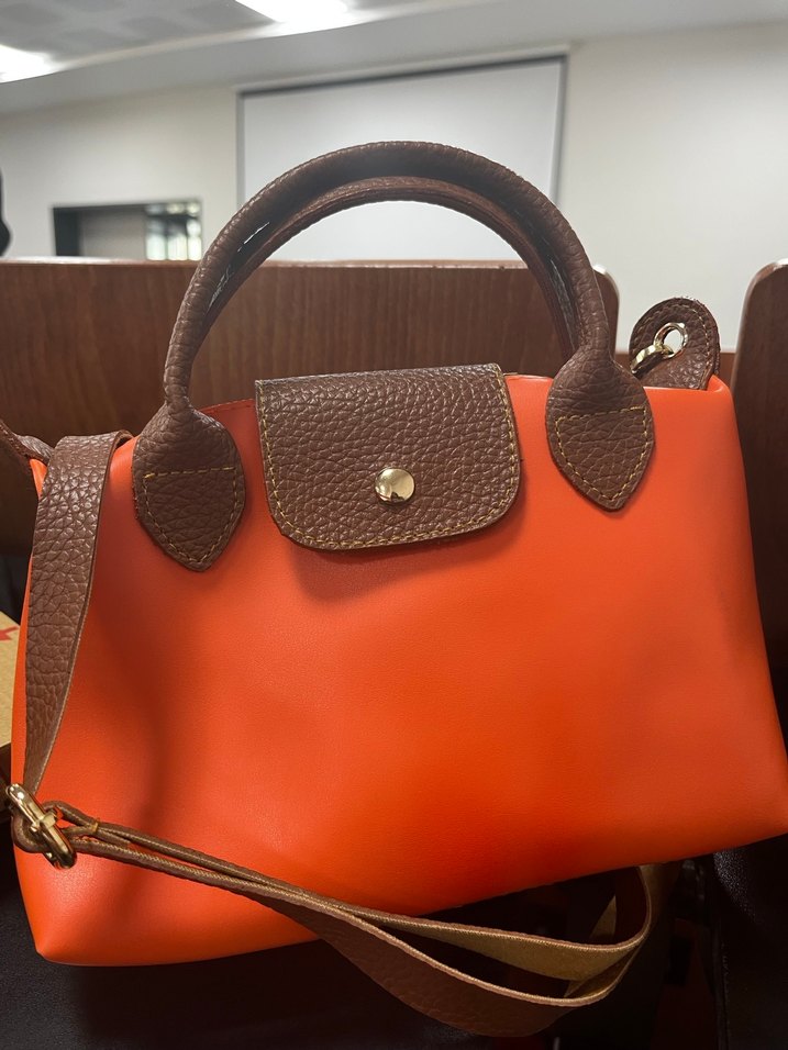 Kahverengi turuncu Tokalı Kadın Deri Çanta