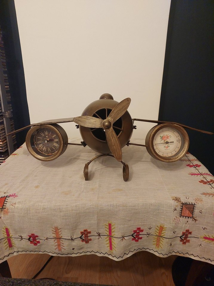 Kahverengi Uçak Tasarımlı Masa Saati