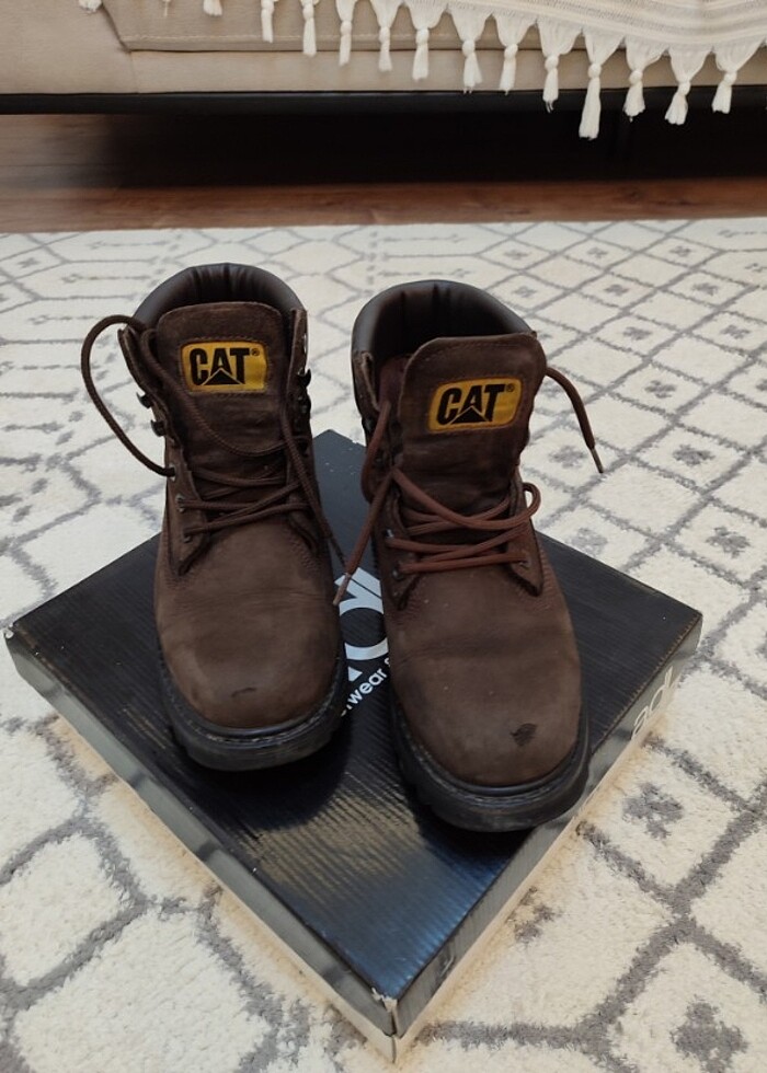 Kahverengi Unisex Cat Bot 40 numara ayağımı sıktığı için çok aşırı giyemedim önünde çarpmadan dolayı o aşınma oldu başka bir sorunu yoktur içinden belli çok giyilmediği. Kasaba mağazasından almıştım zamanında. orjinaldir.