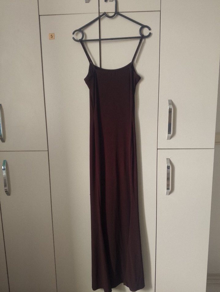 kahverengi Uzun Askılı Kadın Elbise