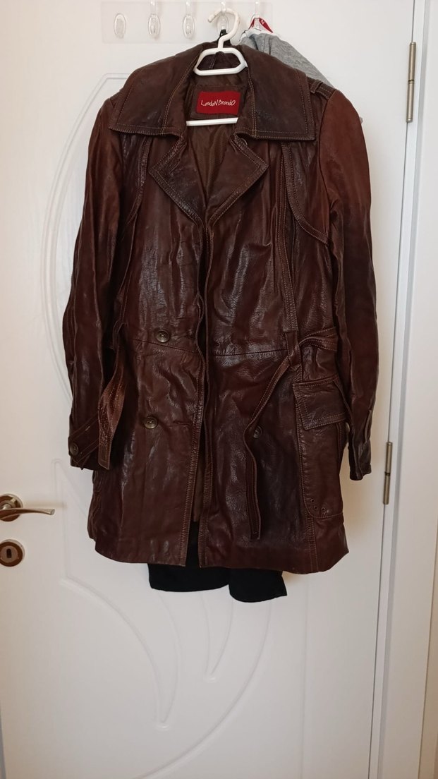 Kahverengi Uzun Deri Kadın Ceket Boynerden alındı hakiki deri